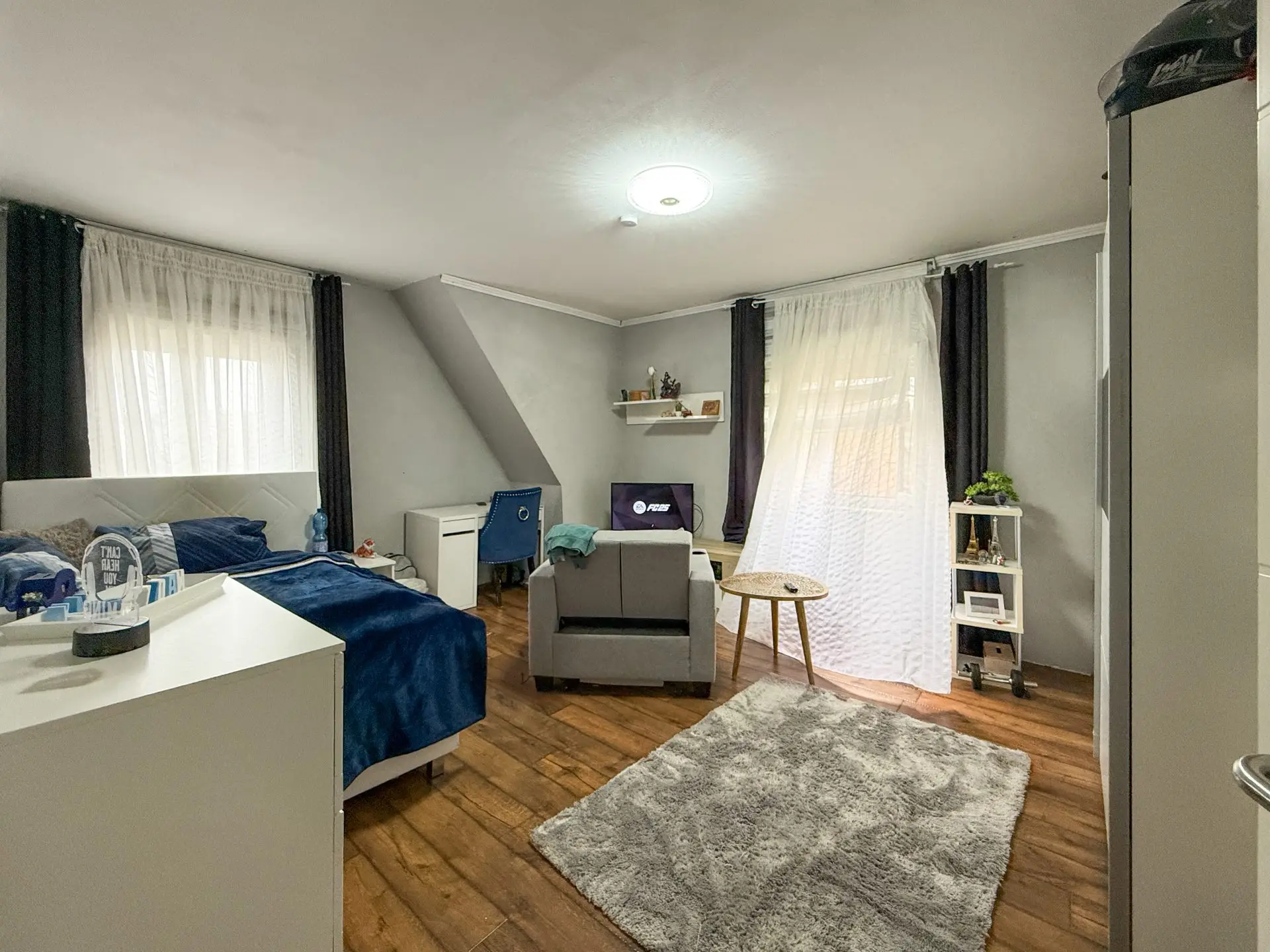 •Dachgeschoss: Zwei ausgebaute Räume, aktuell als Kinderzimmer mit Wohnbereich genutzt.